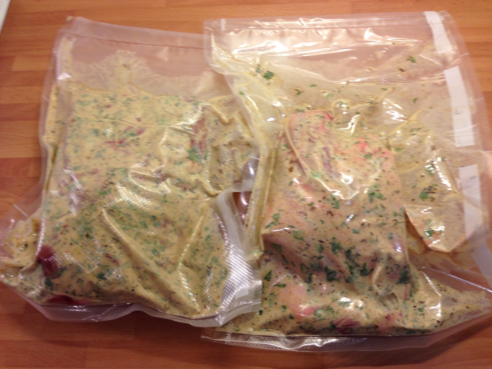 Then I rubbed it into the Lamb, which I had scored to allow the flavours to penetrate and put it into a vacuum bag for 24 hours.