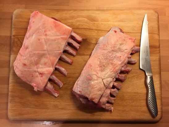 Rather than just by chops I thought I’d get a couple of rack roasts and cut them myself. I planned to griddle some and breadcrumb and fry the rest so there would be a nice texture combination. Cutting them myself allowed me to vary the thickness according to the cooking method.