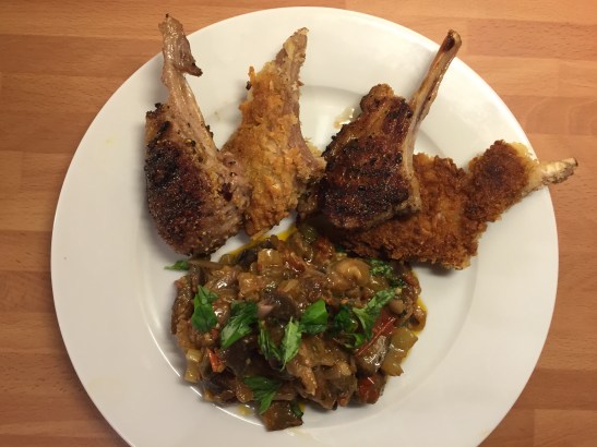 The rest was simplicity itself, the thinner cutlets were breadcrumbed with panko and fried. The rest were rubbed with, chilli, garlic, fennel and salt and griddled.