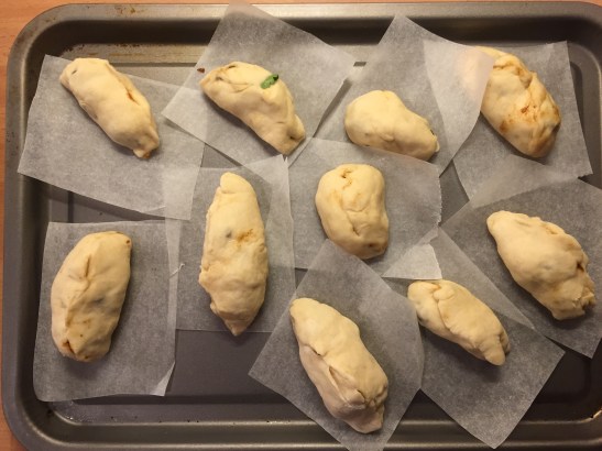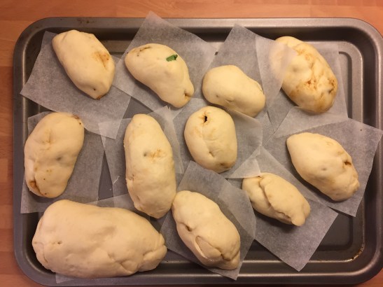 To begin with this was a little messy but you soon get the hang of it. Then it was time for a second half hour prove for the filled buns. In this prove they went from this…….