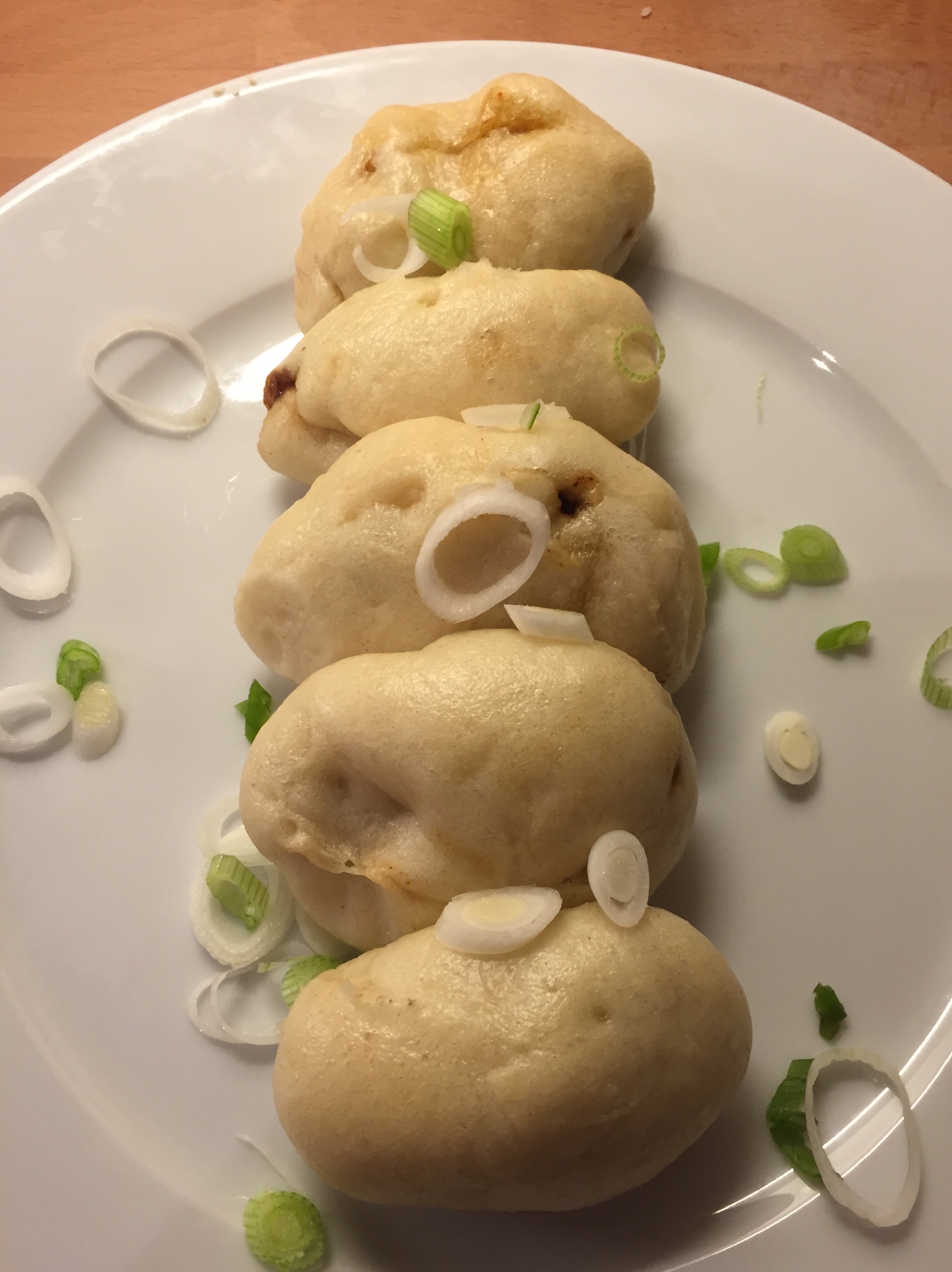 Then it was into the steamer for around ten minutes. After steaming the buns were fluffy and not at all sticky any more.